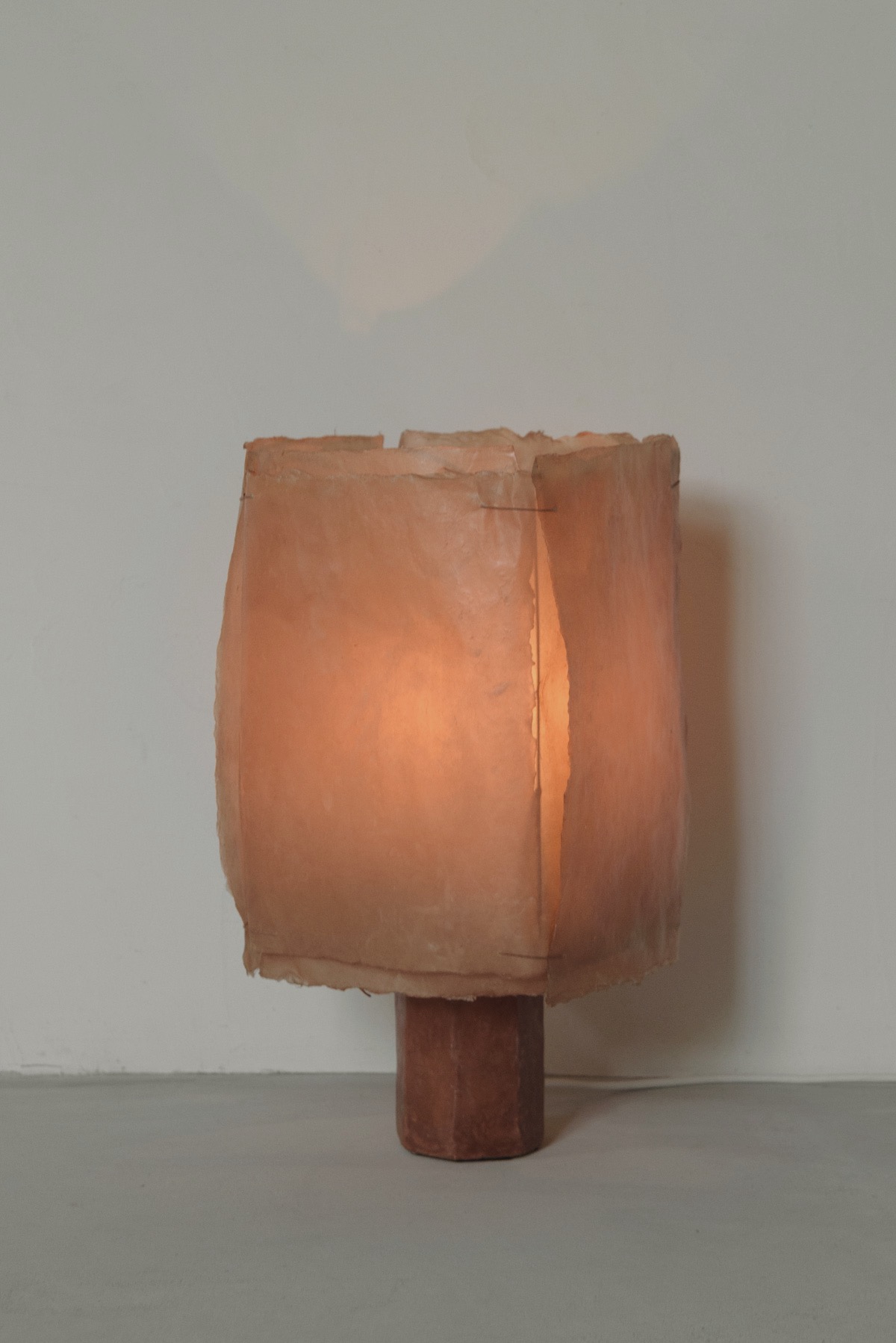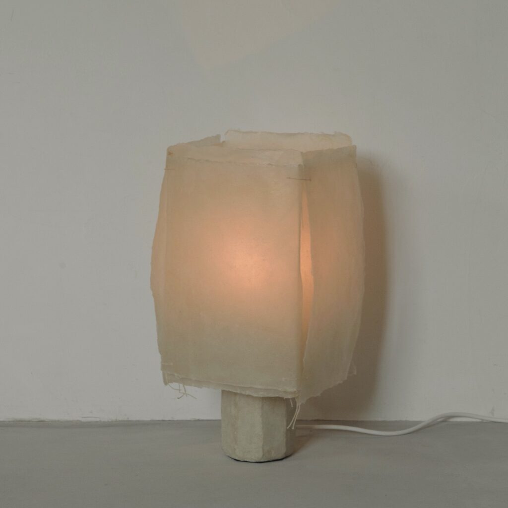This lamp reinterprets traditional techniques of washi paper and earthen walls, which have long been used in Japanese homes.