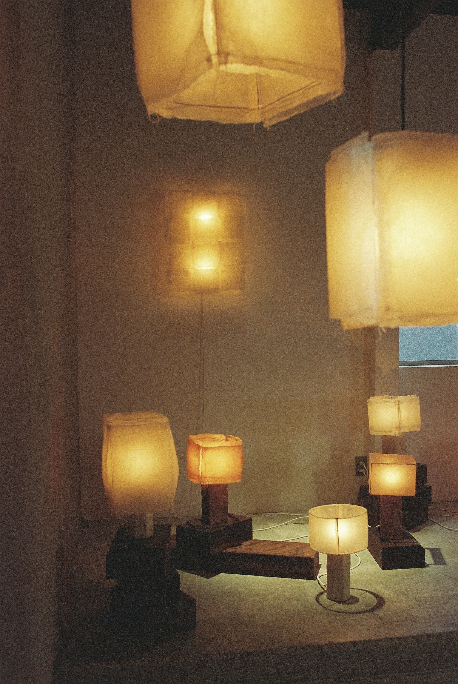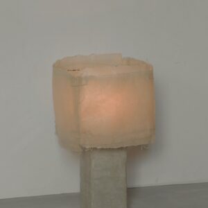 The shade is made of woven or knitted washi paper soaked in wax.
