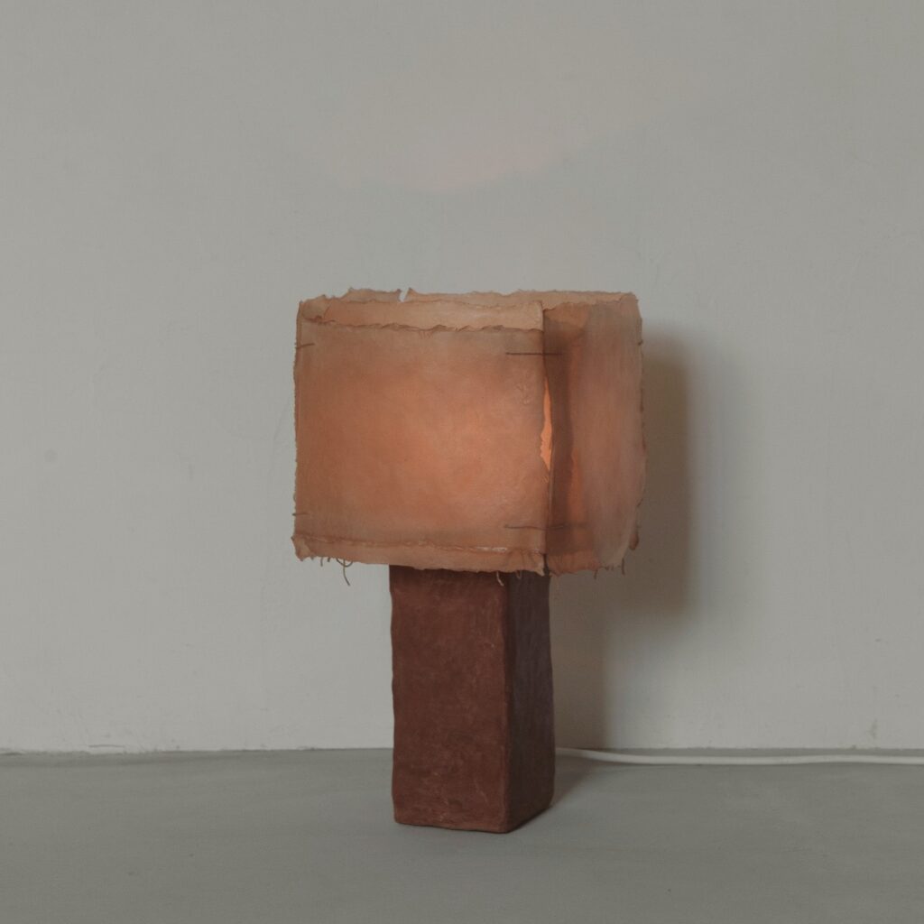 This lamp reinterprets traditional techniques of washi paper and earthen walls, which have long been used in Japanese homes.