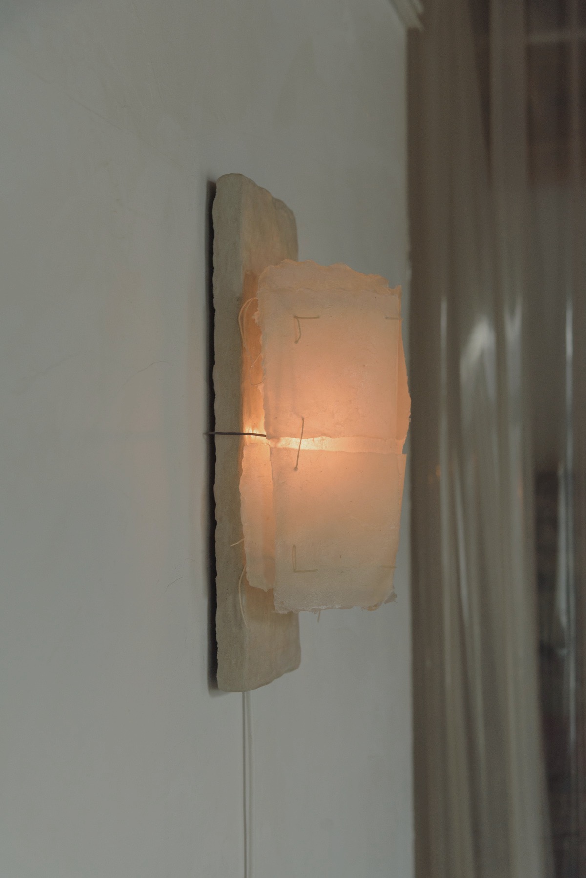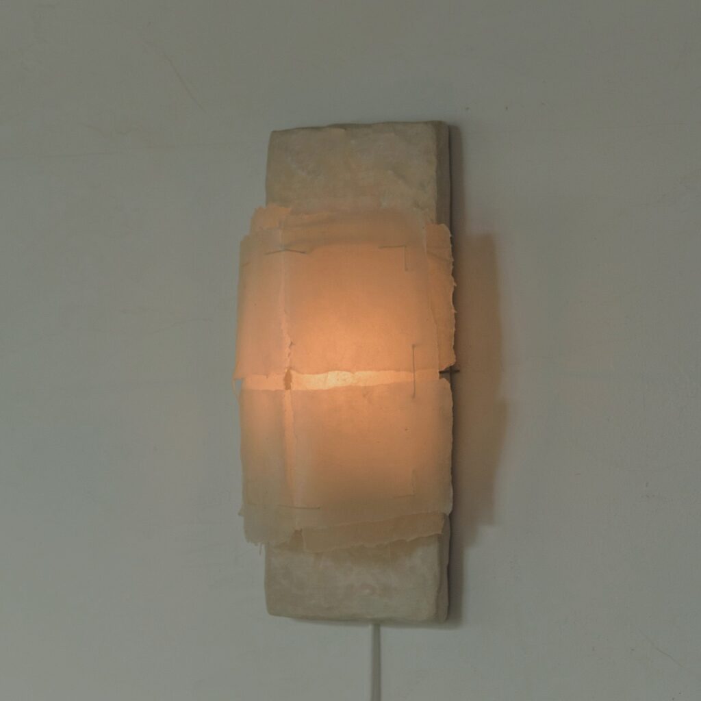 This lamp reinterprets traditional techniques of washi paper and earthen walls, which have long been used in Japanese homes.