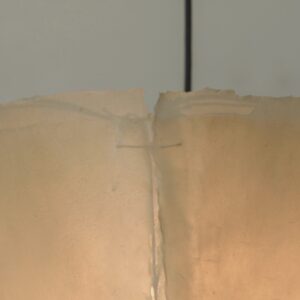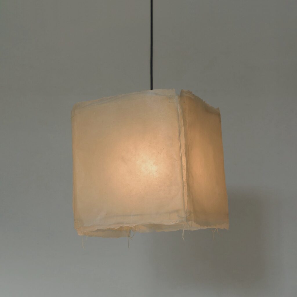 This pendant lamp features a shade made of washi paper soaked in wax, incorporating both weaving and knitting. size - W330 D330 H360 mm color - beige socket - E26 cord length - approx. 3000mm plug - Japanese ceiling plug production started: 12/2025